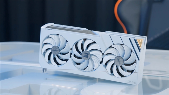 散热模块采用的是技嘉风之力散热系统,风扇采用的是仿生鲨鱼鳍设计,通过仿生表面降低噪音水平,还可以增加风压,并且自带3D启停、正逆转以及RGB炫彩光轮。均热板直触+12根复合式热管,并辅以进气格栅技术,用料极其豪华。