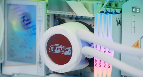 同样的,在RTX 4080 SUPER钛金雕显卡的侧边也有一块LCD显示屏,默认信仰模式下可显示实时的GPU和VRAM信息监控,也可以自定义文字、图片以及GIF动图。比如谢帝就在冰雕X 360水冷上DIY了“FUQI”的ICON,类似的图片也可以在RTX 4080 SUPER 钛金雕显卡上展示。