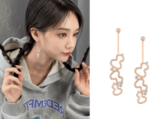 演员李一桐佩戴Qeelin WuluWulu玫瑰金镶钻耳环
