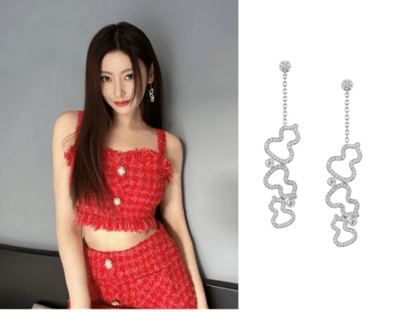 时髦讯号,即刻发出!演员张天爱佩戴全新Qeelin WuluWulu白金镶钻耳环,点睛甜酷红色穿搭。
