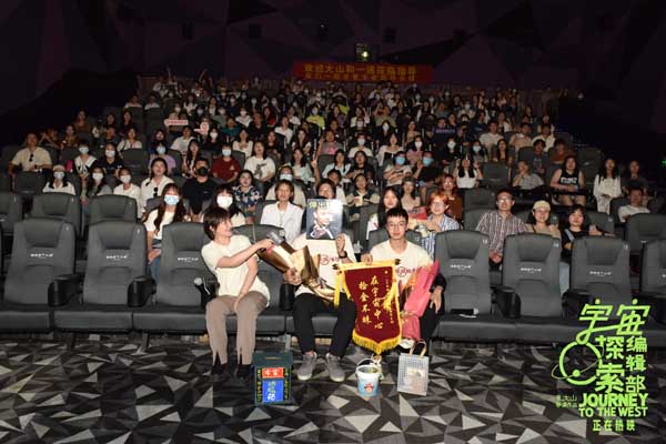 “电影让我不再孤单” 《宇宙探索编辑部》全国路演海口站收获满满赞叹与感动在活动现场,观众们纷纷热情分享观影感受,一位观众还向主创们赠送了颇具海南风味的“椰树版宇宙功德箱”。“不故作清高,不流于神秘,荒诞的底色却是彻底的真诚。”有观众认为,“影片很像生活本身,过好每一天,爱每一个具体的人,哪里需要宏大的主题?对一件事执着和迷恋,又何尝不是幸福”?许多观众表示,“能在影院看到这样一部国产科幻片实属不易,希望孔大山导演的下一部作品也能不负期待,带来更多的心灵震撼”!“我知道它很特别,却没想到这么好看”,一位观众说,“节奏精准的剪辑、出其不意的配乐都制造了一种神秘的荒诞感。单看每一幕都是极漂亮的词藻,组合起来却又是一首耐人寻味的诗,而整个写诗的过程,幽默和浪漫都恰到好处,让离经叛道也变得合理。看似只是向外探索广袤的大宇宙,实际却是在向内探索内心的小宇宙”。“我可能没有完全看懂,也说不出深刻的内涵,但是我在观影过程中流了很多次眼泪”。另一位观众表示很多的画面和那一刻的感情跟自己达到了一种共鸣,她也在这两个小时里跟主创们的思想达到了共鸣,“让我感觉我在这个世界上不再孤单,我觉得这就是一种意义”。