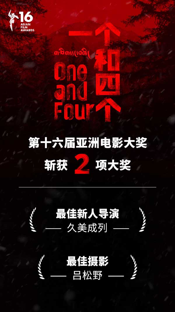 北京时间3月12日,第十六届亚洲电影大奖在中国香港举办盛大颁奖典礼。由万玛才旦监制,久美成列执导,金巴、王铮、达杰丁增、才多等演员主演的电影《一个和四个》在一众海内外影片中脱颖而出,成功斩获最佳新导演和最佳摄影两项大奖。
