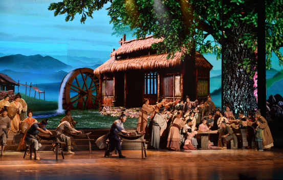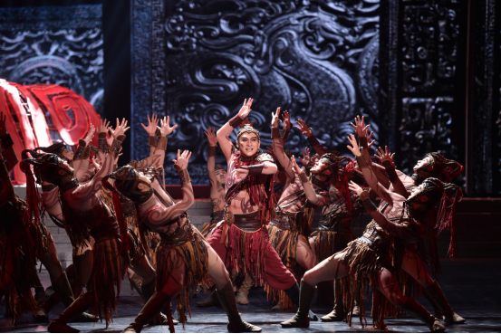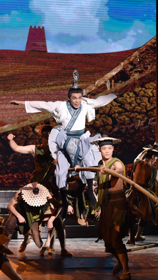 “号角连营西风烈,蹄卷黄沙秋色寒……”低沉磁性的男声抑扬顿挫吟诵的开场诗与雁门关外的硝烟弥漫;童声的吟诵与王心悲悯与黎民同耕同作画面翩然呼应,金色的光束挥洒而下,勾勒出一派天下太平的盛景……《天下归心》从浩渺如海的历史中寻找创作灵感和故事来源,将诗情、乐意、舞魂互融共通,用现代的美学观念演绎出中华文明之根脉,唯美的舞台场景及深厚的文化底蕴,得到现场上千观众的集体点赞。