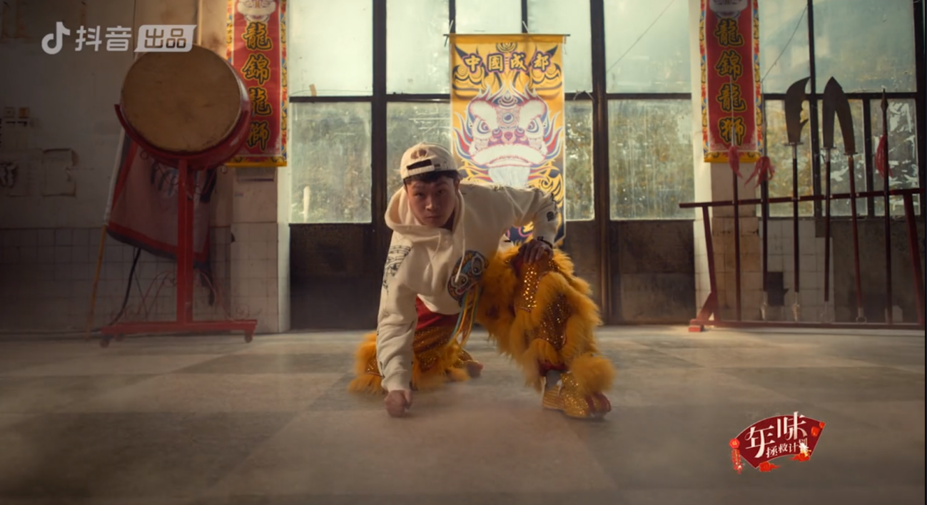 立足于继承传统文化的《心中鼓点》部分,讲述了生在舞狮世家却一直抗拒舞狮的小熊在诓骗下回了家被父亲强逼着练习舞狮,在练习中逐渐对传统文化了解和改观,并收获了他人的新认同的故事。这个部分,抖音邀请到了千万粉丝的“国风变装第一人”@朱铁雄 进行演绎。2021年8月,@朱铁雄 发布了第一条视频,为保护一个患病的孩子,他变身“齐天大圣”孙悟空,在激昂的唢呐声中,身披金光,腾空而起。这条短视频收获点赞181万次,评论5.5万条,获得爆发式“出圈”。此后,朱铁雄又陆续发布20多条短视频,收获千万粉丝,被网友称为“国风变装第一人”。