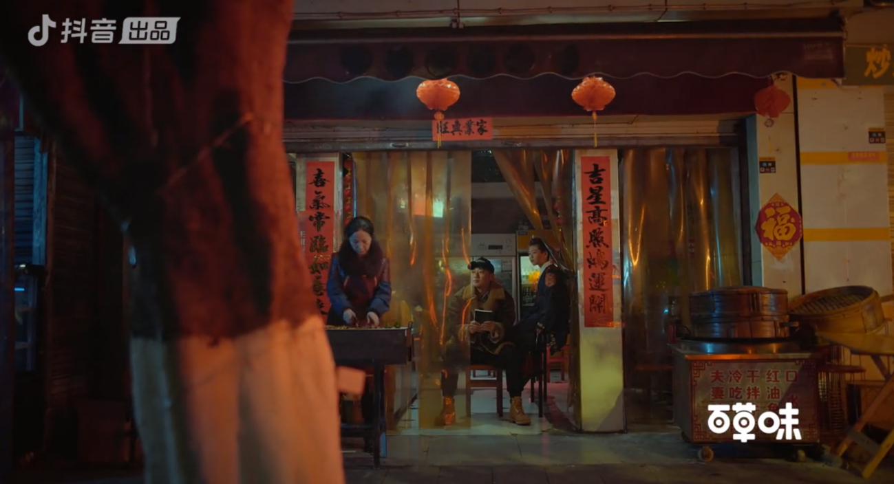 在《二舅烧烤》部分,则讲述了抖音美食千万级达人@特别乌拉拉,与烧烤摊老板娘和外卖小哥在大年夜时连夜借食材做饭给高速路人送温暖的故事。故事温暖的底色下,也融入了从“鸡架不放葱花犯法吗”到“灵魂声音OS”“大过年的、来都来了”等抖音评论区的种种热梗,让人不由得会心一笑。