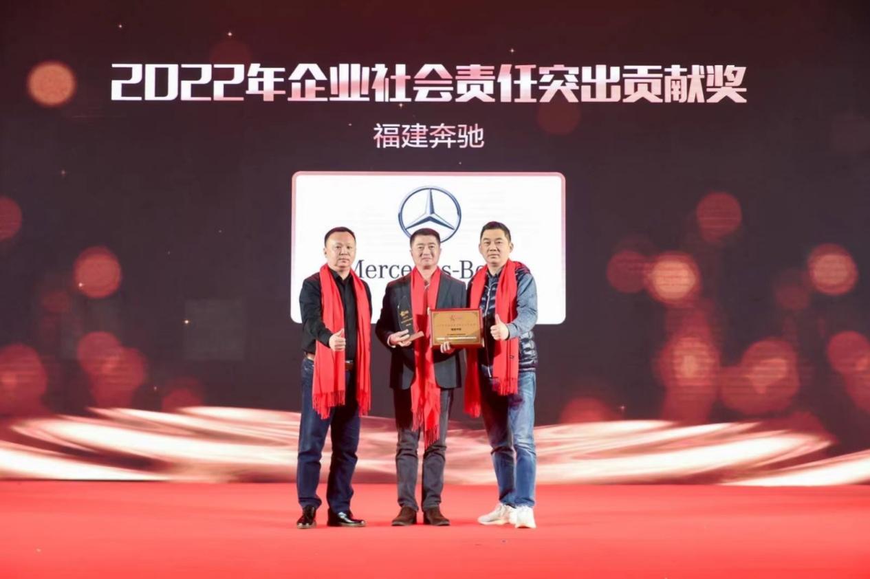 第七届福建车市品牌盛典和2022中国(福建)汽车总评榜均将“2022企业社会责任突出贡献奖”授予了福建奔驰,双重肯定了福建奔驰在公益教育、环境保护、人才培养等多个社会责任领域作出的积极贡献。