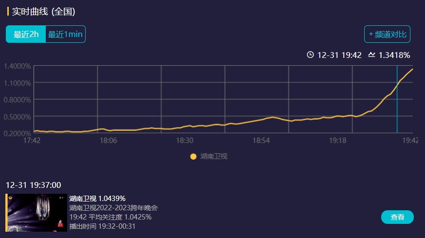 下一个收视关键就是破2了,这对现在的湖南台其实有点难,2022年一整年他们的晚会策划都非常保守,邀请的明星全是自己人,不是姐姐就是哥哥,把“去流量化”执行得很彻底,这一次连王一博都去了隔壁东方台表演。