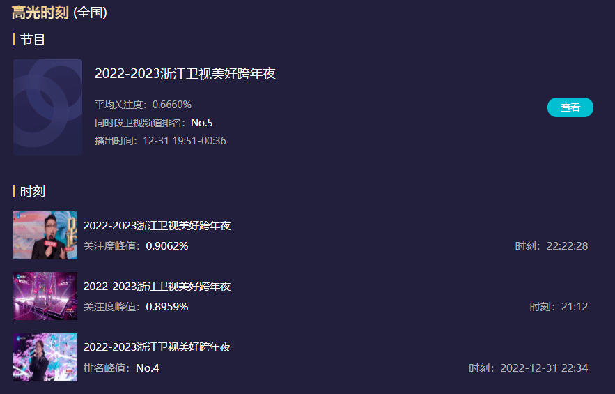 第六名就是浙江台了——看了跨年晚会的观众应该都认可这个排名吧,还是那句话,晚会口碑都是一年一年累积起来的,想留住观众获得高收视,记得要持续输出好内容哦。