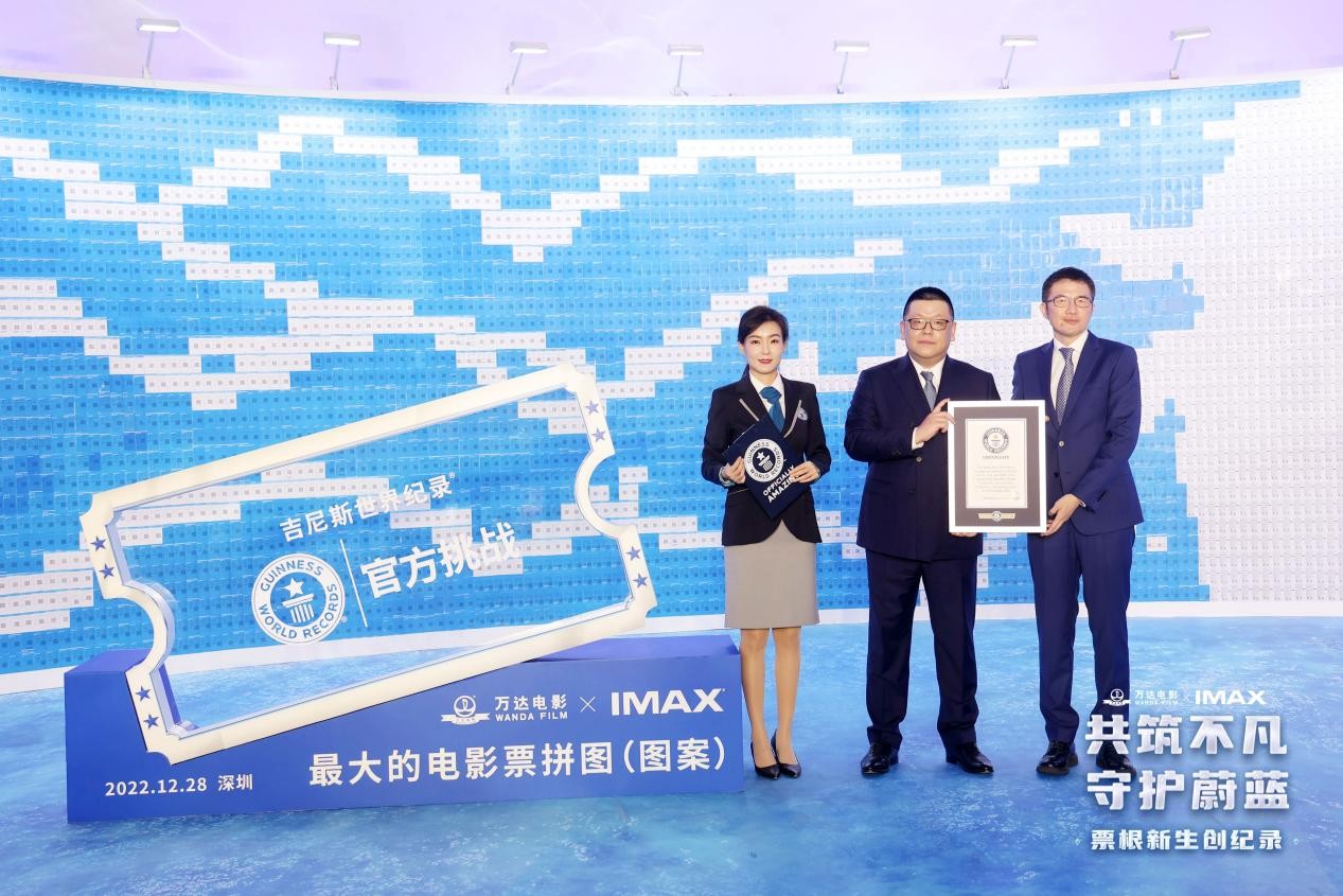 认证活动当天正值世界电影127周年诞辰,万达院线副总经理李劲波先生现场发表感言:“五湖四海的影迷齐心协力,用手中的电影票汇聚成人与自然和谐共存的美好场景,这是我们为电影献上的一份独特告白。”IMAX中国市场部副总裁曹增恺先生宣布本次挑战的后续环节:“我们将邀请墙绘艺术家,以这幅票根拼图为蓝本,绘制艺术涂鸦墙。在完成展出之后,回收再加工为限量收藏品,并回馈给影迷朋友。”实现影票“源于影迷又归于影迷”的完整闭环,一起用小小的影票,撑起每个热爱电影的人心中美好的梦想!