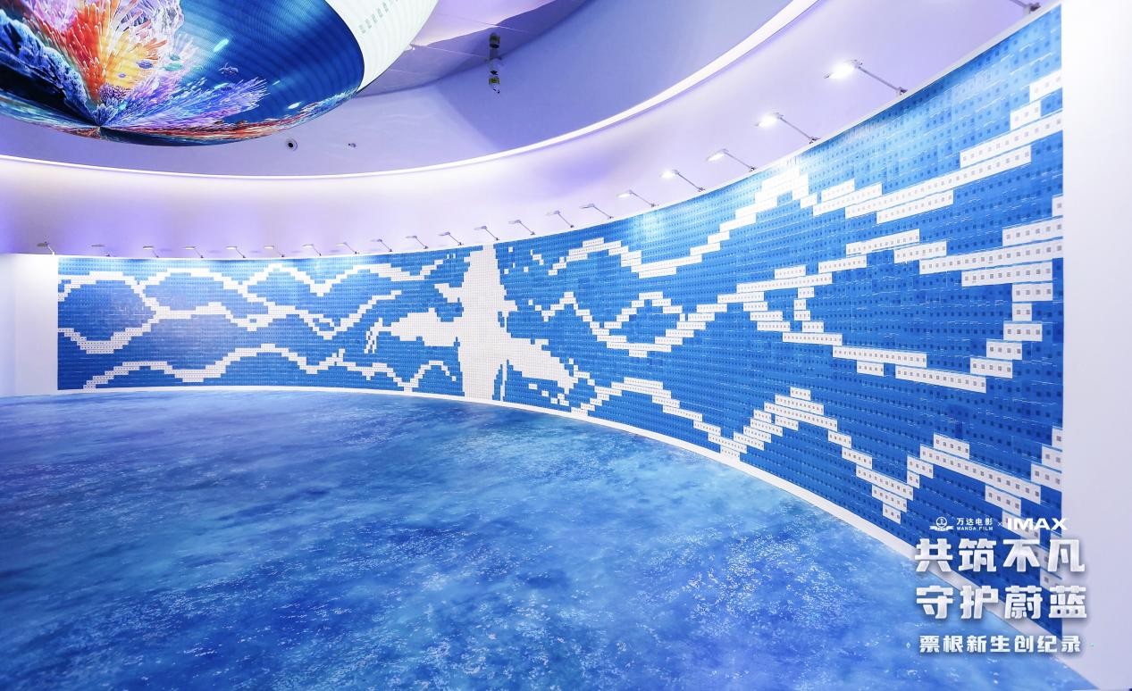 本次由万达电影和IMAX联合发起的“共筑不凡 守护蔚蓝——票根新生创纪录”挑战,以《阿凡达:水之道》上映为契机,向全国万达电影及IMAX影迷征集电影票。在影迷志愿者的共同努力下,来自全国各地的10170张影票共同造就一片“蔚蓝海洋”,高度还原影片中纳威人与海洋生物图鲲心心相惜的经典一幕。活动延续电影的海洋环保主题,通过影票的回收和再利用使其“重获新生”,呼吁大家共同守护海洋这座蓝色的宝库。