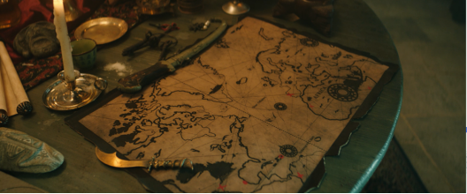 其次,细看空镜剧照会发现制作团队在布景、道具上的极致追求。现场有匕首、青铜摆件、银盘蜡烛等众多收藏品,集合中西特色物件;放在桌上的地图似乎更透露出当年航海寻宝的绝密线索;更甚的是,屋内陈列的欧式雕像、金盘子等,连反光与锈迹细节都无比逼真,网友一度怀疑摄制组用了真实藏品,纷纷表示团队的用心与大手笔投入简直“细思极恐”。