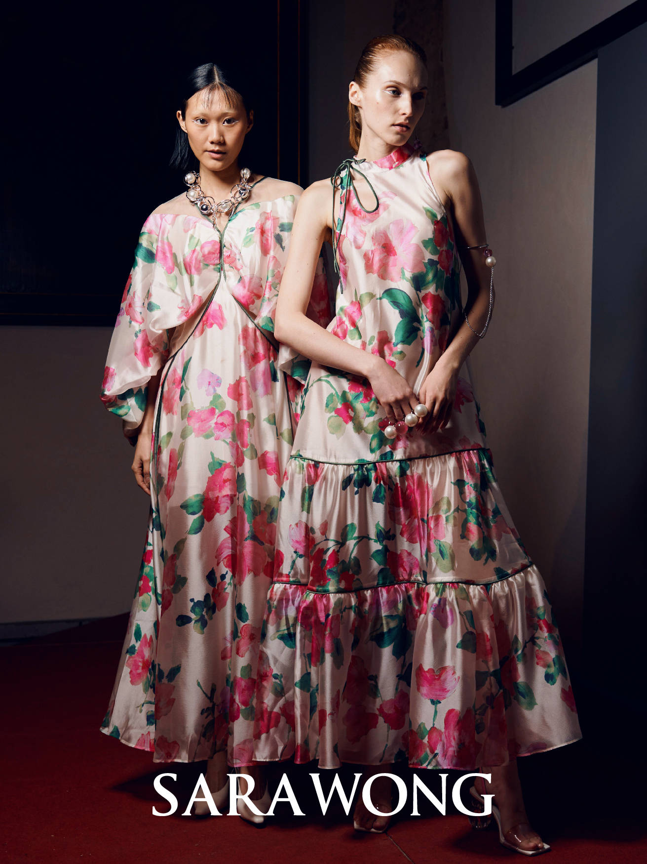 SARAWONG于设计中描绘一幅烂漫春色。传统瓷器的花纹图案被纳入衣裙,以印花、钩花的形式呈现,提取粉红、蓝、天青等瓷器色彩,还原瓷器花纹的质感和光泽,东方美韵于细节中无限绽放。