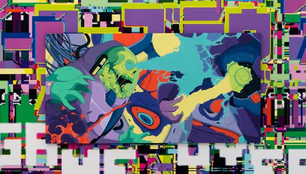 Emil的作品带有低眉艺术和强烈的超扁平艺术风格。前者最早起源于二十世纪六七十年代的美国,从地下艺术运动兴起,广泛运用各种媒介、探索不同题材的可能性,掀起的视觉艺术行动对于现代艺术影响深远。后者则被认为是日本的流行艺术形式,代表艺术家有村上隆、奈良美智等,已然成为了一种世界性的艺术运动。Emil Ohluand的画面里没有厚重、繁杂的装饰,乍看之下仿佛是喷绘而成,其实则是由艺术家用传统的笔刷完成的。但同时,Emil刻意的隐去了他的笔触,期望使画作达到“超扁平”的特殊效果,让他的画作更具有视觉冲击力。在Emil的作品中还往往出现骷髅战士的形象,这是因为他想创作出一个能代表80-90年代的流行文化缩影。酷似EVA初号机的配色、无处不在的乐高砖块,这些艺术家童年的记忆通过画作外化,组成了一个可以短暂逃离现实的维度。